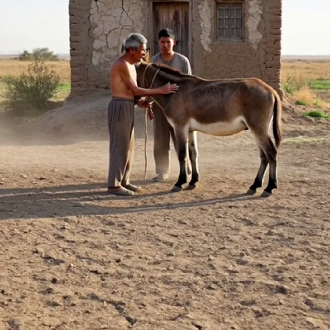 —«¿A dónde llevas ese burro, joven?»— preguntó el anciano con una voz que sonaba como el viento entre los árboles.