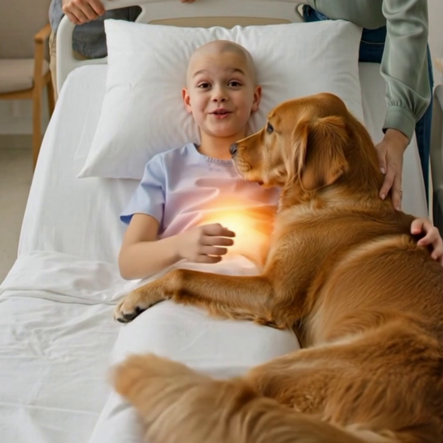 En la habitación 402 del ala oncológica infantil, el silencio era casi absoluto, roto solo por el pitido rítmico de las máquinas. En la cama, el pequeño ser —de rostro pálido y ojos cansados— respiraba con dificultad. A su lado, apoyando su cabeza sobre las sábanas blancas, un viejo Golden Retriever de pelaje denso y mirada profunda permanecía inmóvil.