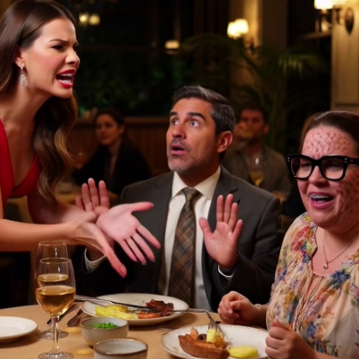 De pronto, Victoria, la elegante esposa de Julián, apareció frente a la mesa. —«¡¿Julián?! ¡Me estás engañando con esta mujer tan fea!»— gritó, señalando a Marta con horror.