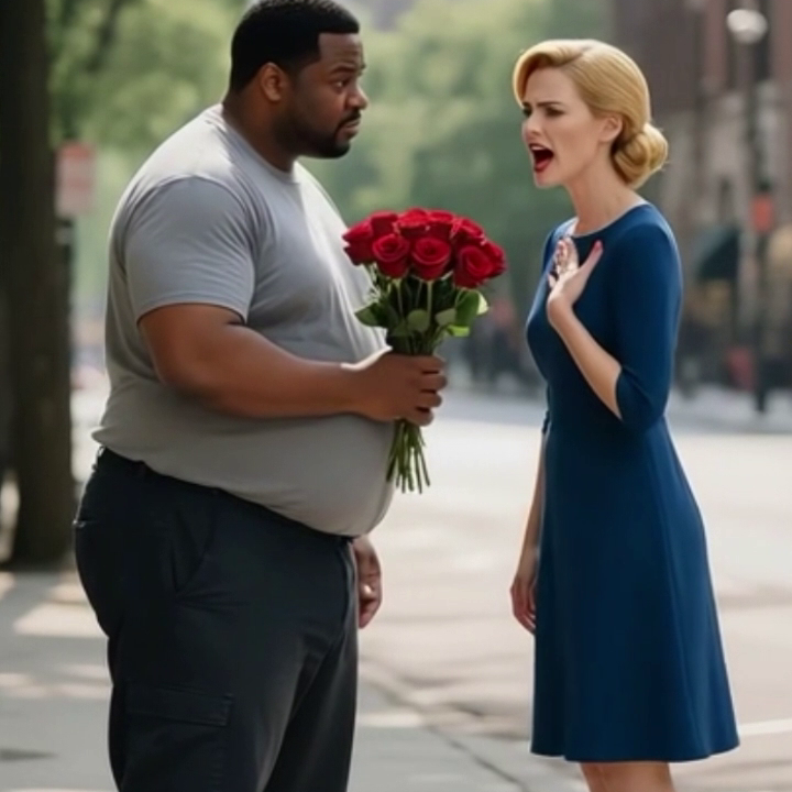 La tarde era cálida, pero el corazón de Samuel se congeló en un segundo. Samuel, un hombre negro, obeso y de alma noble, se detuvo frente a Vanesa, una mujer delgada que lucía un impecable vestido azul. Con las manos temblorosas, le extendió un ramo de rosas rojas.
