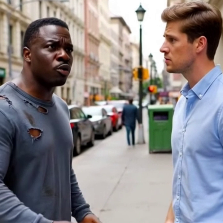 —¿Puedes prestarme dinero? Me asaltaron y no tengo ni para el transporte — le dijo el hombre negro con voz entrecortada, extendiendo la mano en busca de auxilio. El hombre blanco se detuvo un segundo, pero solo para mirarlo con un desprecio evidente, recorriendo su figura de arriba abajo como si fuera un estorbo en su camino.