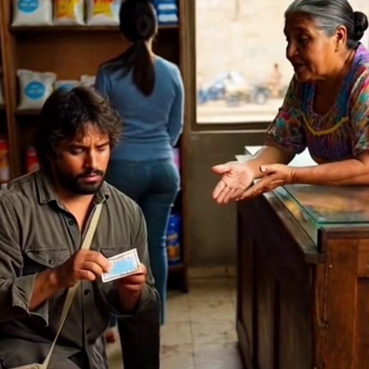 —¡Gané! ¡Gané un millón de dólares! — gritó el hombre, saltando de felicidad mientras mostraba el billete a la anciana. La dueña de la tienda aplaudió emocionada, celebrando la fortuna del hombre que no tenía nada.