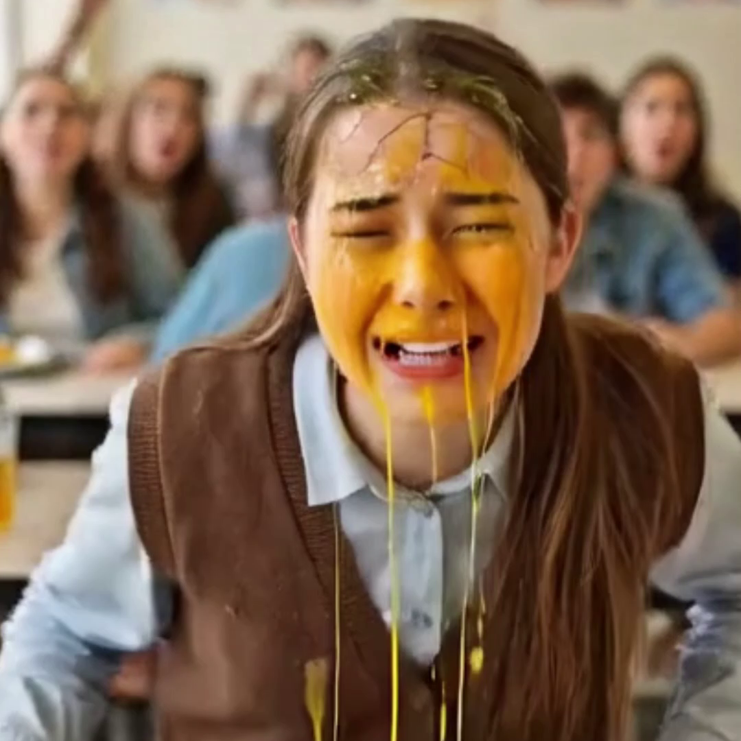 —«¡Cómete eso, perdedora! Quizás así tu cerebro de mojigata funcione mejor»— gritó Isabella mientras el resto estallaba en risas.