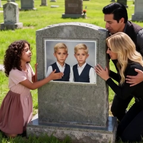 El cementerio municipal estaba sumido en un silencio sepulcral, interrumpido únicamente por el crujido de las hojas secas bajo los pies de los visitantes. Elena y Ricardo, una pareja vestida de un luto riguroso que parecía haberse convertido en su segunda piel, permanecían estáticos frente a una lápida de mármol blanco donde descansaban los nombres de sus dos pequeños hijos. El dolor de haber perdido a sus niños en un supuesto accidente automovilístico hacía un año los consumía diariamente. De repente, una pequeña figura se materializó entre las tumbas vecinas. Una niña de mirada profunda y ropa desgastada los observaba con una mezcla de curiosidad y tristeza. En un cementerio la niña se acerca a una tumba donde está una pareja , deteniéndose justo frente a la foto de los infantes grabada en la piedra.