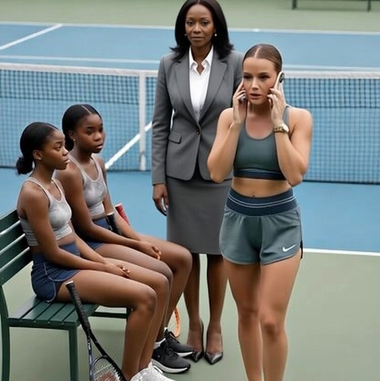 —«Hola, quiero hablar con el gerente de aquí de la cancha de tenis de inmediato. Hay una situación inaceptable. Hay dos personas aquí… negras, ocupando el espacio. Esto es un club de prestigio, no un parque público. Vengan ahora mismo»— exigió con un tono autoritario.