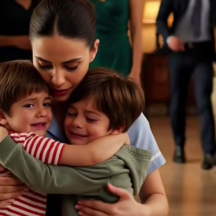 El salón principal de la mansión estaba repleto de invitados elegantes, pero el ambiente se rompió con el llanto desconsolado de dos niños. Sus padres y los invitados los miraban con incomodidad, sin saber cómo calmarlos. De pronto, María, la empleada de servicio, apareció rápidamente.