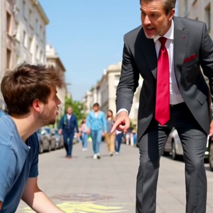 —«¡Recoge tus cosas! ¿No ves que estás estorbando aquí?»— gritó Valeriano, pateando la caja de tizas de Daniel. —»La calle es para caminar, no para que vagos como tú la ensucien con dibujos que a nadie le importan».
