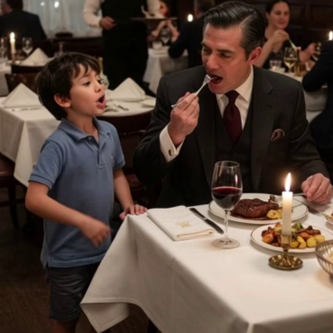Ricardo, un exitoso empresario, se encontraba cenando solo en un lujoso restaurante. Estaba a punto de probar su filete cuando un pequeño niño llamado Leo se acercó a su mesa con urgencia. «¡Señor, no coma, por favor! Le pusieron algo en la comida, yo lo vi», exclamó el niño con desesperación. Ricardo, acostumbrado a que lo interrumpieran por dinero, respondió con frialdad: «¿Quién eres tú? Lárgate, no tengo tiempo para juegos».