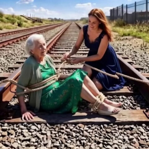 Elena, una mujer consumida por la ambición, llevó a su suegra Marta hasta unas vías del tren alejadas de la ciudad. Con movimientos fríos y calculados, ató a la anciana a los rieles de acero mientras una sonrisa macabra se dibujaba en su rostro. «Lo siento suegra, su hijo nunca la encontrará aquí», sentenció Elena con desprecio, asegurándose de que los nudos estuvieran bien apretados.