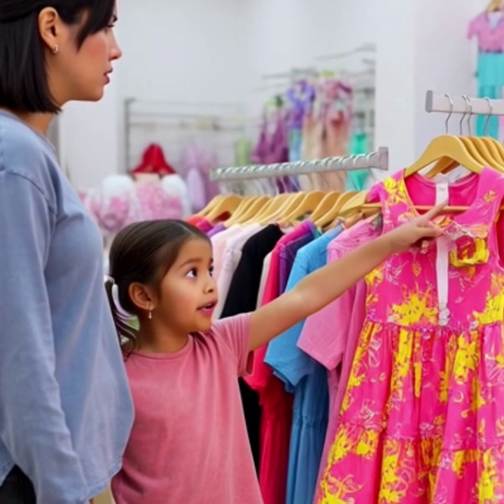 —«¡Mamá, mira! Quiero ese vestido para mi cumpleaños»— exclamó la pequeña con ilusión.