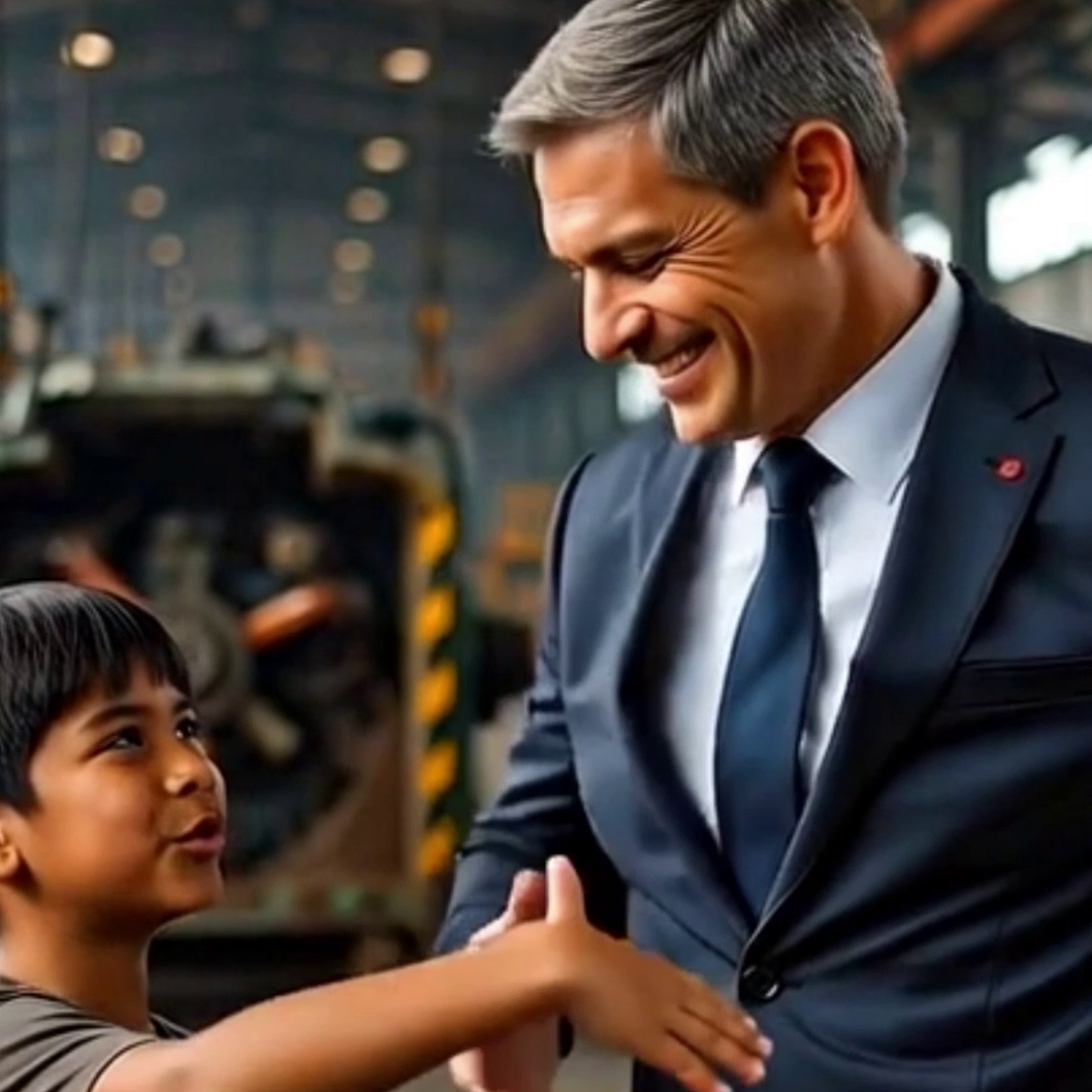 Garrido cumplió su palabra. Los documentos fueron firmados y el nombre de Mateo apareció junto al suyo en la entrada de la fábrica. Con el tiempo, el hombre dejó de ser el jefe arrogante y terminó siendo el mejor amigo del niño.