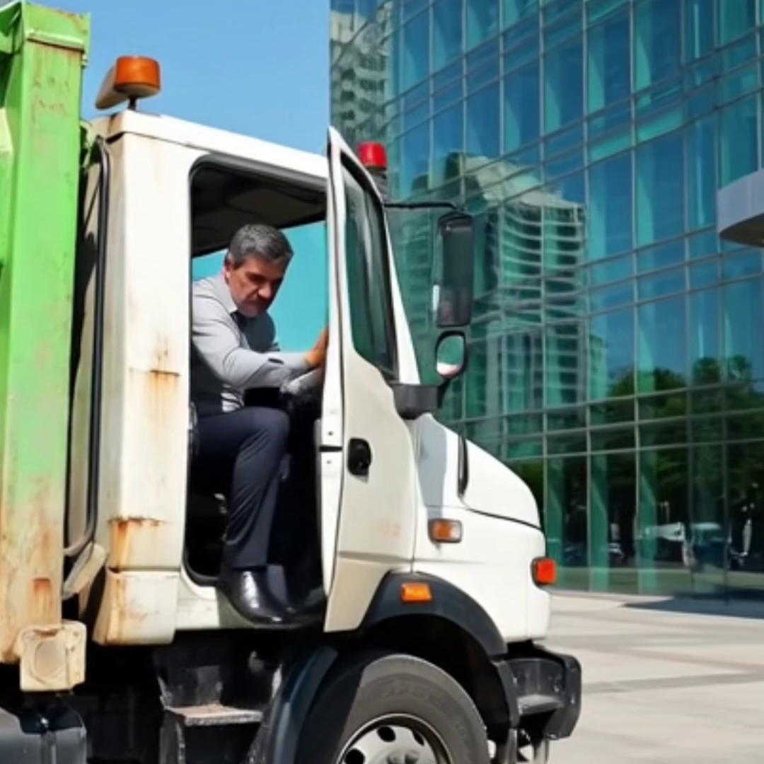 «¡Qué asco! ¿Cómo se atreve a parar ese camión de basura aquí?»— dijo el primero, tapándose la nariz. —«Seguro se equivocó de ruta. Esta gente no tiene educación, ensucian la fachada de una empresa tan prestigiosa como la nuestra»— añadió el segundo con una risita burlona. —«Deberían multarlo por traer esa chatarra a nuestra zona ejecutiva»— remató el tercero.