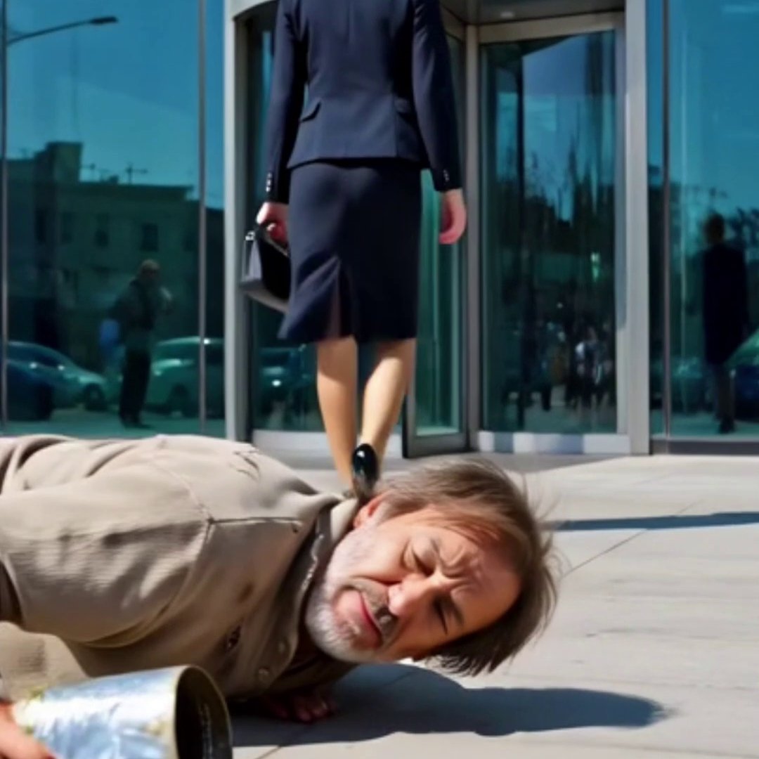 El hombre perdió el equilibrio y quedó tirado en el suelo, con sus monedas rodando por toda la acera. Camila ni siquiera miró atrás; entró al edificio con la barbilla en alto, convencida de que su preparación académica la hacía superior.