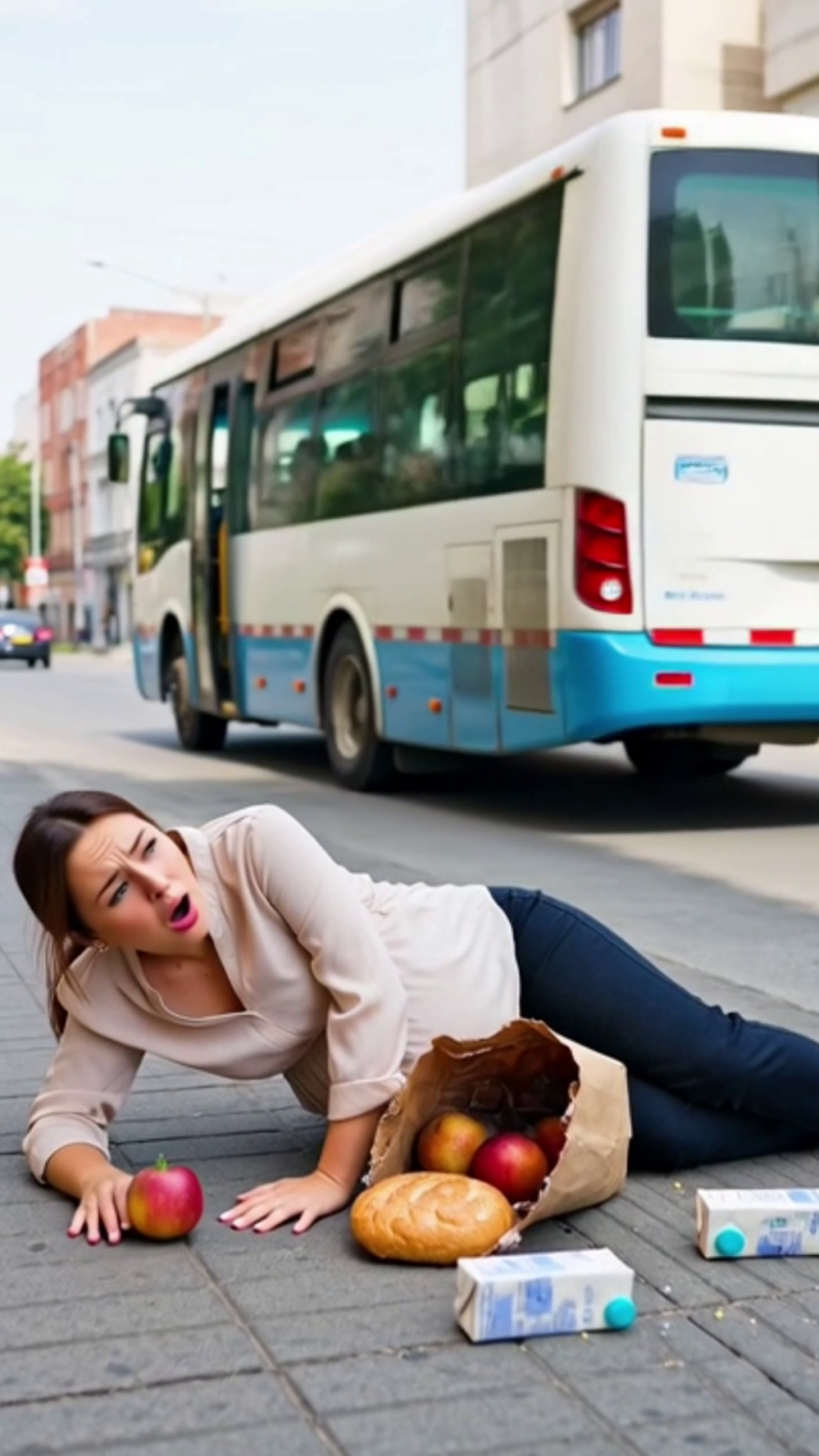 Me empuja estando embarazada pero el chofer me levanta